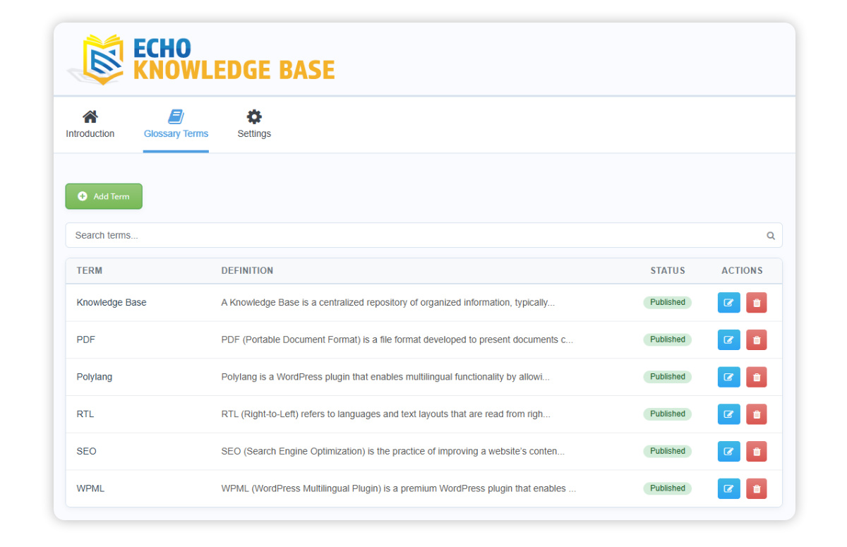 If the Glossary is not visible in the WordPress admin area, the feature may not be enabled. To enable it: